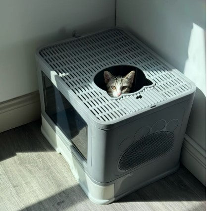 Notre litière contient une entrée frontale pour les chatons et une sortie par le haut, idéale pour éviter la dispersion de litière et stimuler l’agilité du chat.